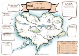 Deze downloadable versie is gemaakt op A3 formaat. Als je hem uitprint op A3 (of 2 A4tjes aan elkaar plakt) passen er precies kleine sticky notes (47 x 47mm) in de vakken.